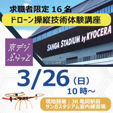 今回は、JR亀岡駅前にある「サンガスタジアム by KYOCERA」の室内練習場での実技体験を含む、座学で活用事例や、今後の就職に繋げるためのヒントを学べる貴重な機会です。
