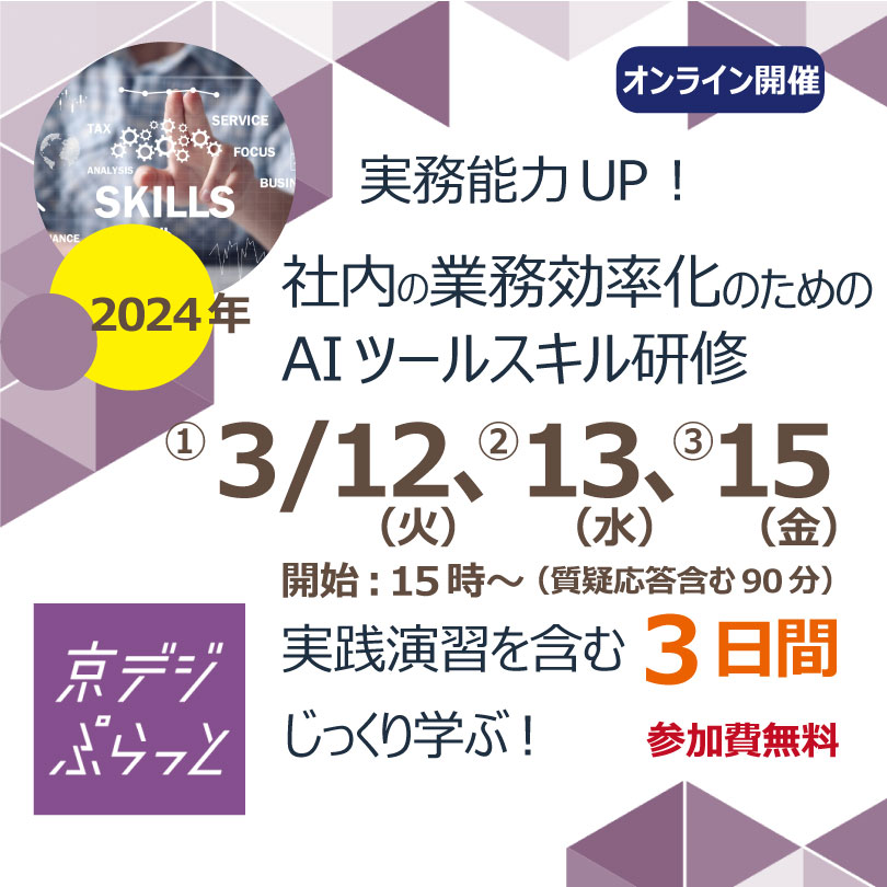 3/12、13、15_実務能力UP!社内の業務効率化のためのAIツールスキル研修3日間