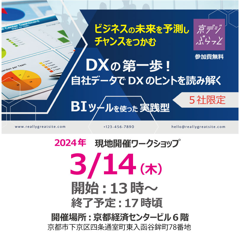 <5社限定ワークショップ>ビジネスの未来を予測しチャンスをつかむ! これからの企業経営では避けては通れない自社データのデジタル化からの利活用ができる環境を整えること。 実際成功しているデータ活用による業務効率化・売り上げ増の可能性とは?どのようにデータ分析をすべきか?悩みを抱えておられるご担当者は多いと思います。 BIツールで有名な「Microsoft Power BI」を使って、販売データなどを分析して売上増に繋げるDX戦略構築を体験する実践型ワークショプ。 今回は、別途動画視聴のデータも4本ご用意しており、そちら視聴の上データ活用ワークショップ4時間を現地でじっくり学ぶ講座をご用意しました! ※経済センタービル6階現地開催のワークショップ5社限定!セミナー詳細