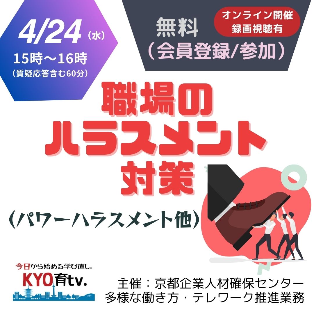 【録画視聴公開】職場のハラスメント対策(パワーハラスメント他):多様な働き方・テレワーク推進業務