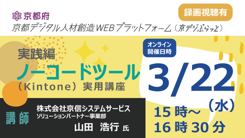 経営者層向け、利活用者向け、求職者向け スモールスタートでデジタル化したい方向け ノーコードとは、プログラムを書かずにソフトウェアを開発する仕組みです。 当講座では、ノーコードツール(Kintone)の実際の画面を見ながら講師がどのようにアプリを作成するかなど「実践編」として解説いたします!セミナー詳細