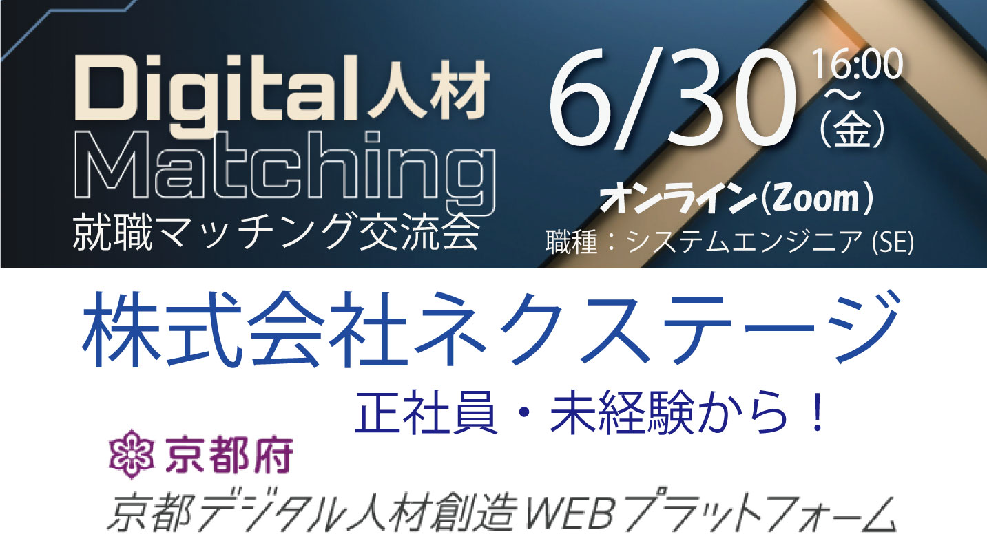 求職者限定 京デジぷらっとの新企画! オンラインでIT職の求人について直接企業担当者に質問してみませんか? 現地開催の企業説明会や、ネットでの情報だけではなかなか質問しにくい、イメージがわかない・・・など感じていらっしゃる方にはぜひおすすめです! じっくり企業担当者から仕事の内容を聞いたり、質問したり!顔出し有り無し、声出し有り無し、お好きなタイプでご参加ください! ジョブこねっと求人票掲載準備中 求人情報 外部リンク:学情Re.就活>https://re-katsu.jp/career/company/recruit/41582/ お気軽にご参加ください!今回ご紹介するお仕事情報