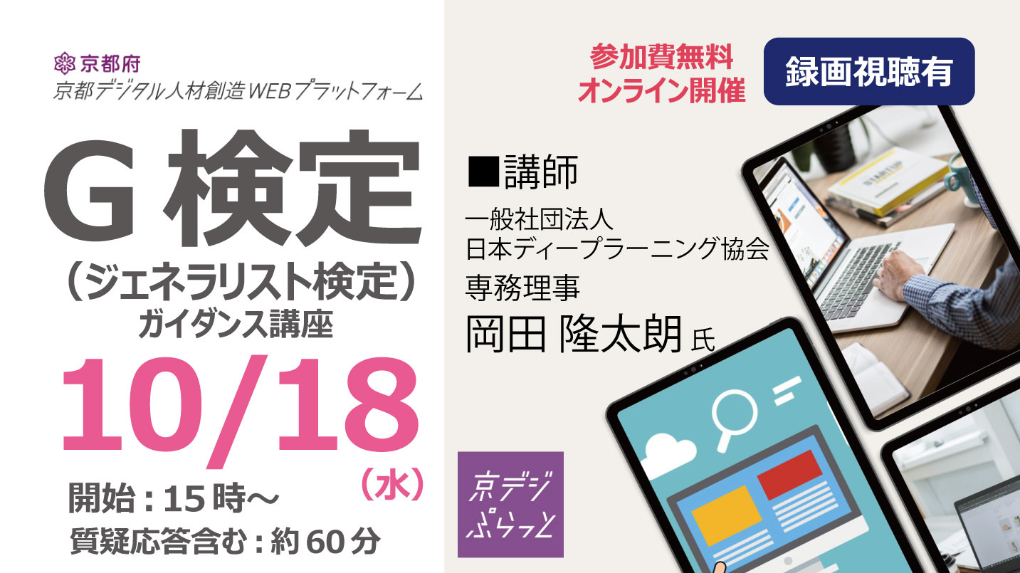 10/18_G検定(ジェネラリスト検定)ガイダンス講座~生成AI を味方に、DX 人材としての自信とキャリアを手に入れる!~