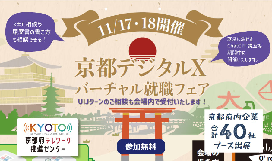「今日から始める学び直しKYO育tv.(以下「本サイト」という。)」は、京都府内の企業等(以下「企業等」という。)への就職を目指す者、企業等で働く者等に対して研修コンテンツの提供等を通じた人材育成及び企業とのマッチングを行うことにより、企業等における人手不足の解消につなげるとともに、京都産業のデジタル化・DX化の推進及び京都府民の学び直しの促進を図ることを目的に、京都府生涯現役クリエイティブセンター(以下「本サイト管理者」という。)が管理・運営するWEBサイトです。