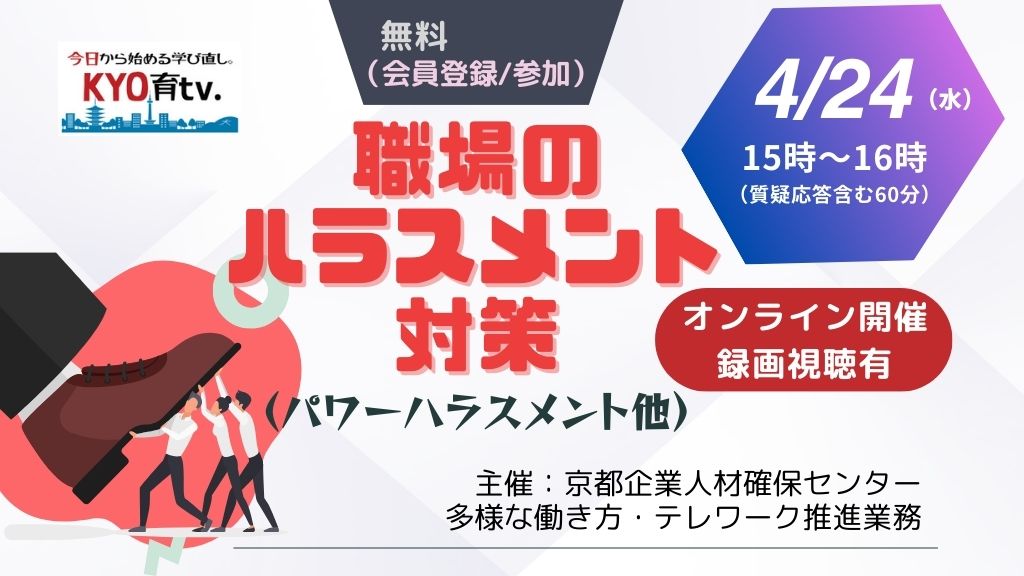職場のハラスメント対策(パワーハラスメント他):多様な働き方・テレワーク推進業務