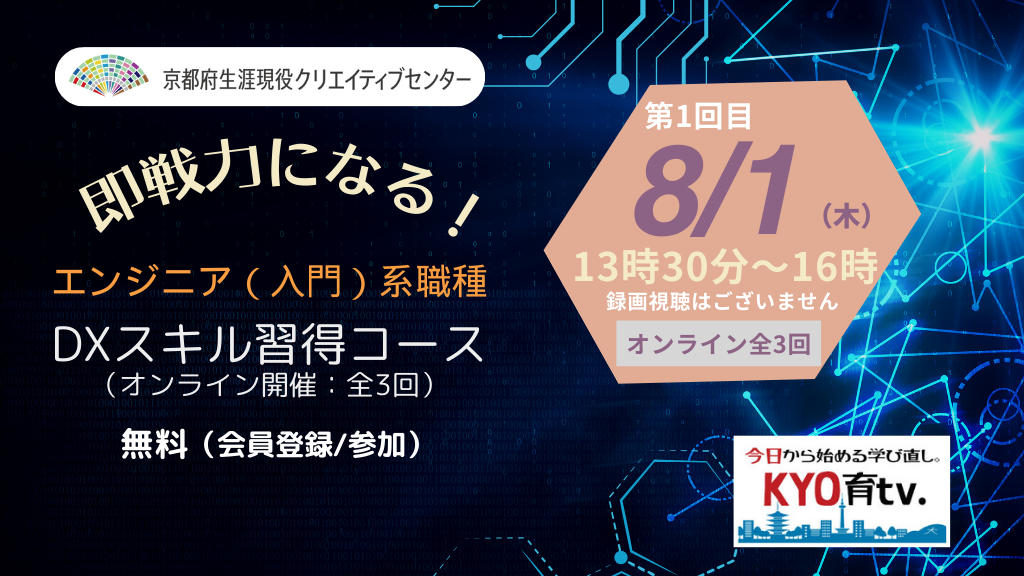 応募締切ました_事前学習&面談あり【第1回8/1オンライン開催】求職者会員限定25名:エンジニア(入門)系職種DXスキル習得コース(全3回)