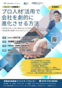 「プロ人材活用で劇的に進化させる方法 セミナー&相談会」を令和7年2月27日(木)に開催します。
