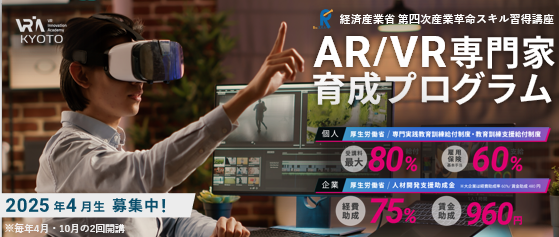 [ご紹介]VRイノベーションアカデミー京都(株式会社クロスリアリティ)から「AR/VR専門家育成プログラム」(有料)の受講者募集のお知らせです。